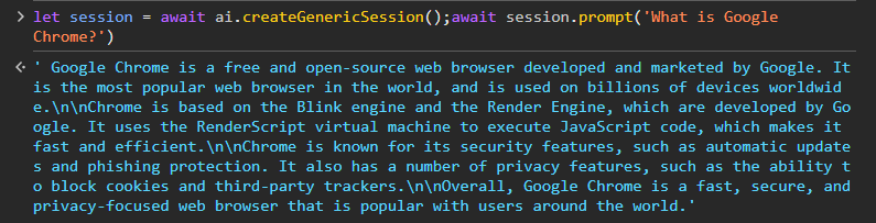 Let's open the javascript console by pressing F12. Creating a generic AI session allows us to prompt Gemini Nano.